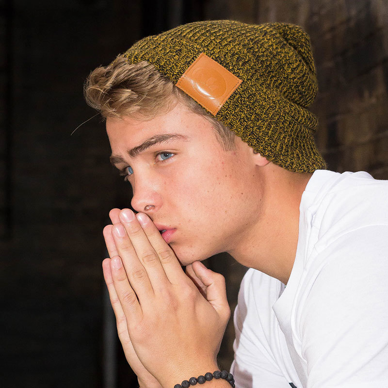 Stay warm in this Fas Project beanie. Our beanie is super soft ribbed with a short fold up fit and a leather patch staple.